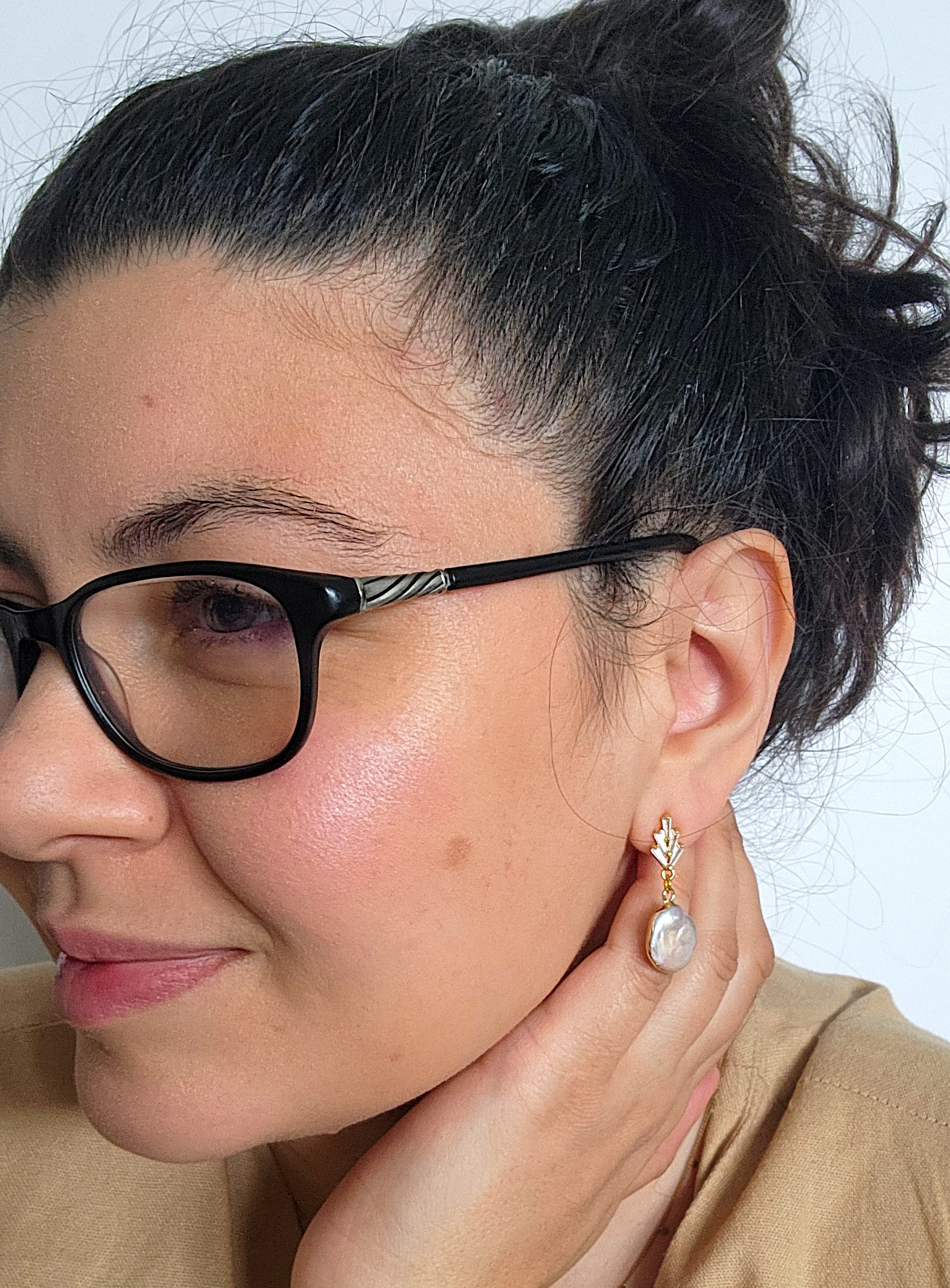 These 18K gold-plated drop earrings feature luminous freshwater pearls paired with sparkling zirconia accents, creating a refined balance between timeless elegance and modern design. Each pearl is naturally unique, offering soft iridescence and organic beauty that elevates every pair.